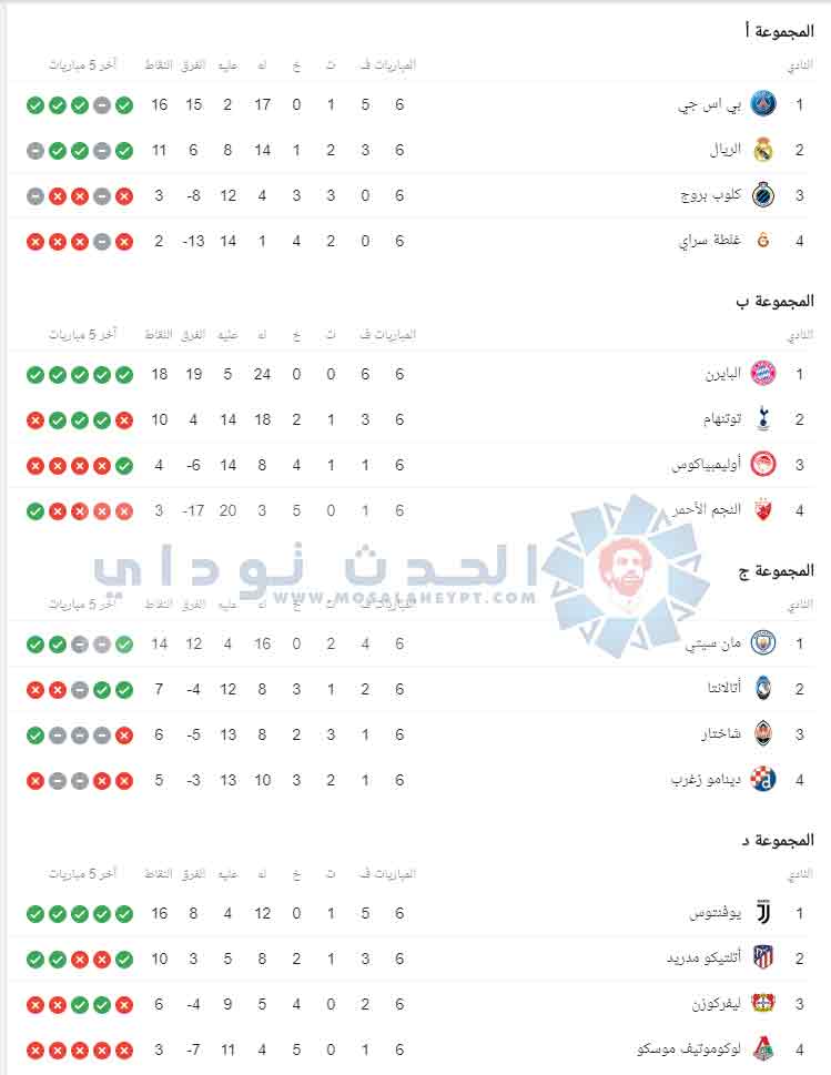 ترتيب دوري أبطال أوروبا 2020